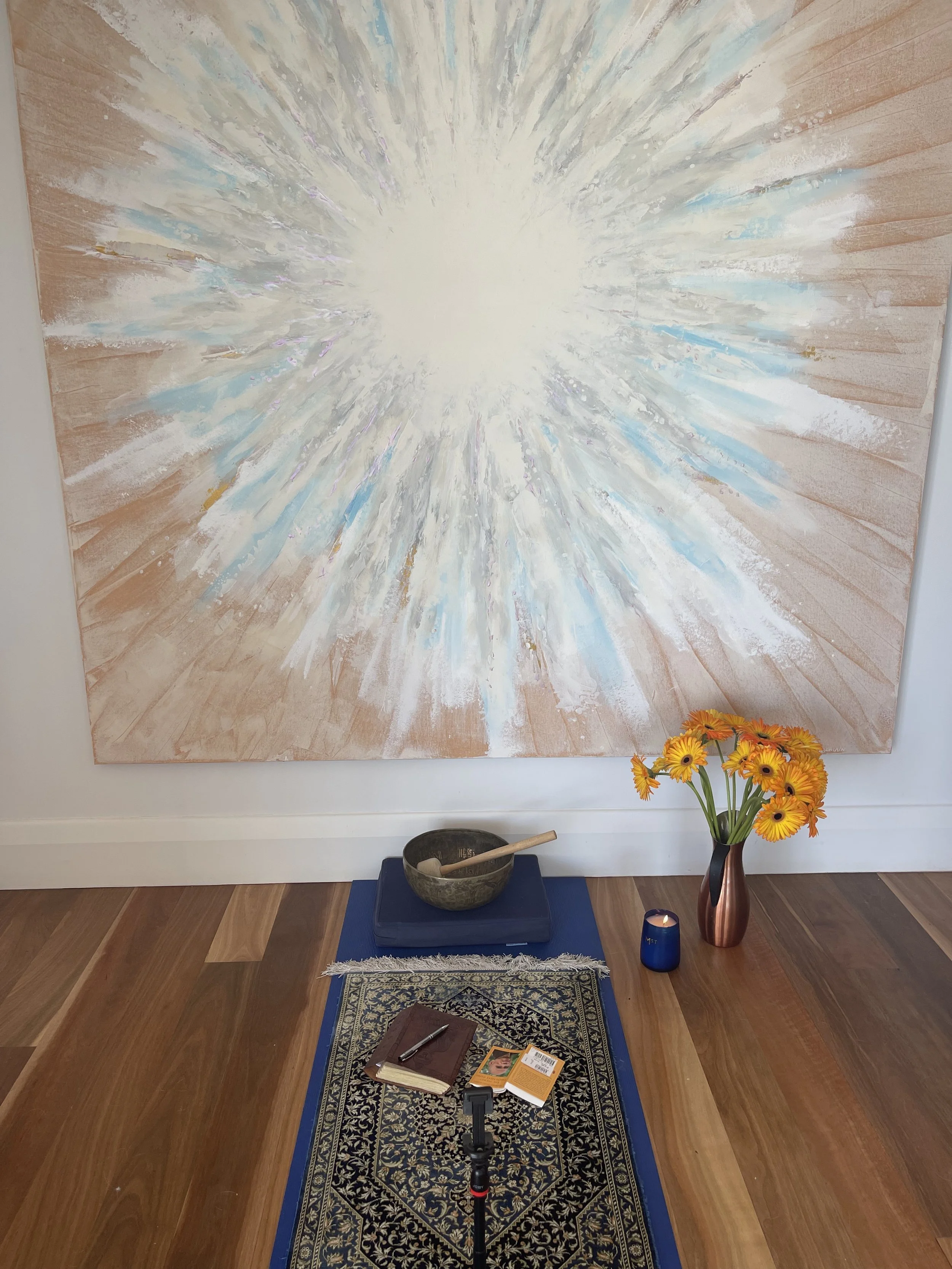 Deliberate set up - I invite you to create a space whether that is different each week or the same and bring in some indication that you are formally starting practice (This could be as simple as a rock you find outside if you are outside or a special mat, cushion, candle, journal, totem of choice).